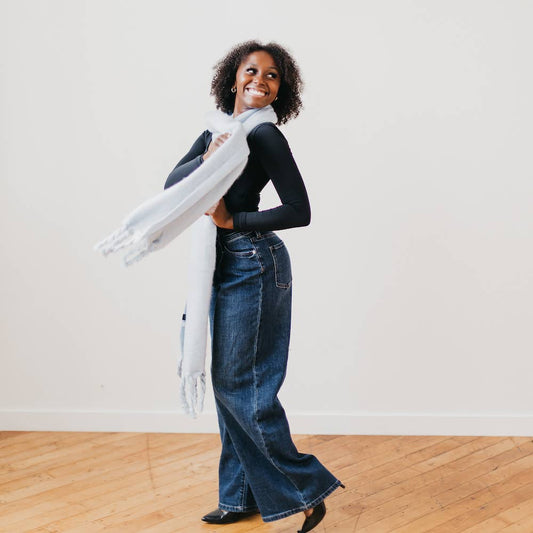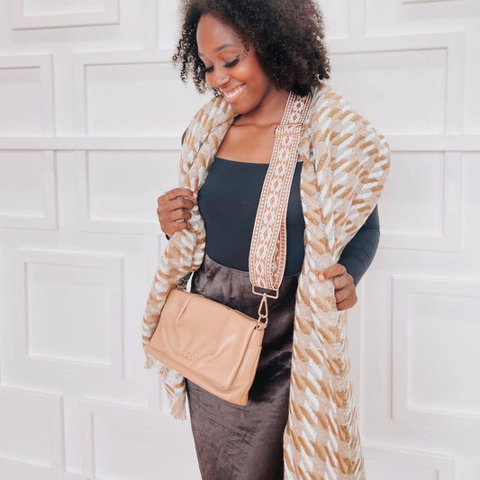 Dotted Two Tone Fringe Scarf, in Blue/Brown