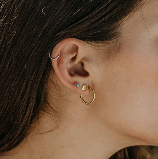 Onion Cut Gemstone Huggie Hoops, with Turquoise